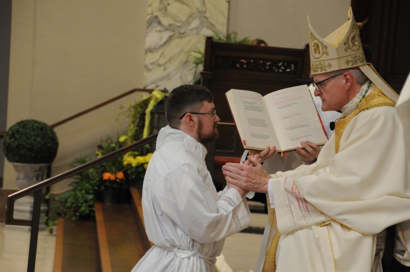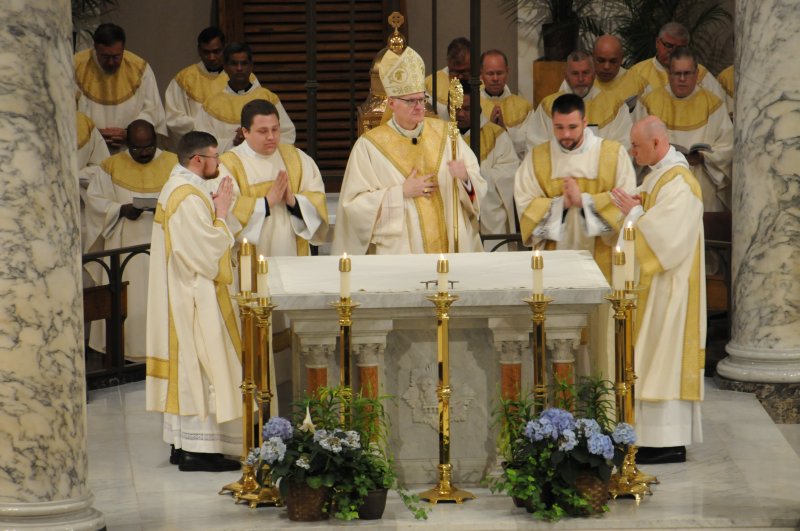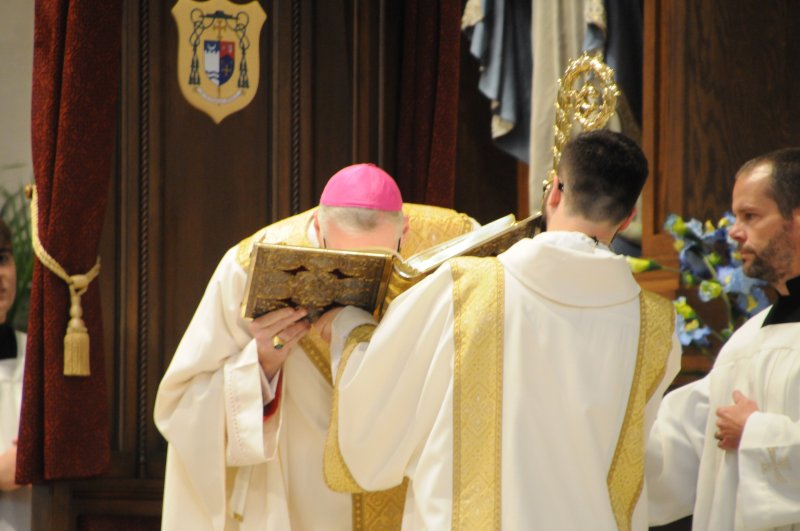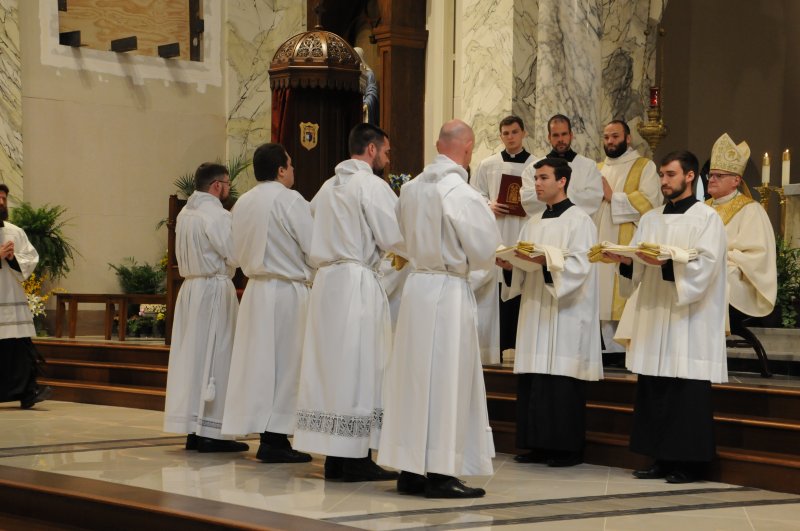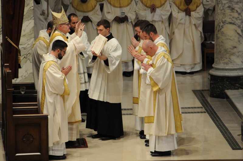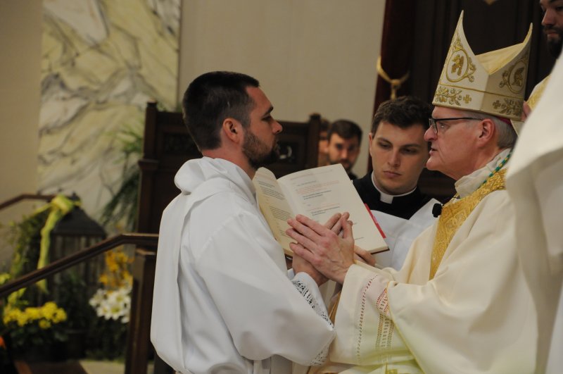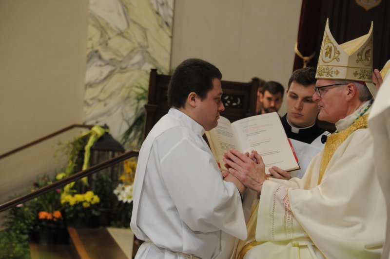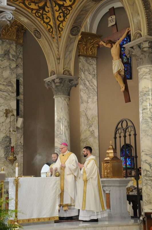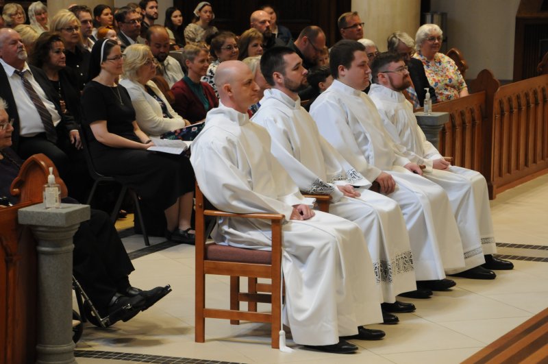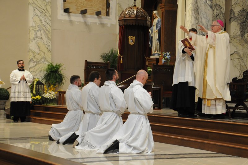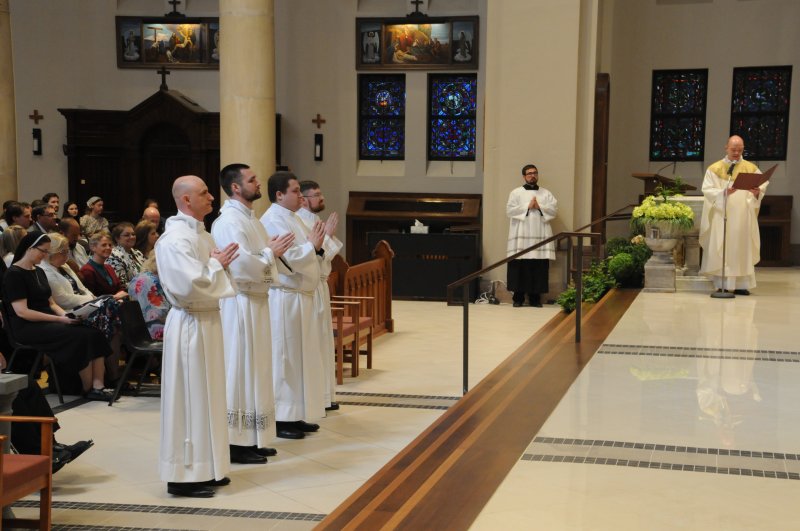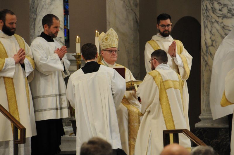 Diocese of Evansville Seminarians Nick Biever, Keith Hart, Aaron Herrenbruck and Clint Johnson were ordained as Deacons during an April 20 Mass at St. Benedict Cathedral in Evansville. All four men are expected to be ordained as priests next year. The Message photos by Megan Erbacher
