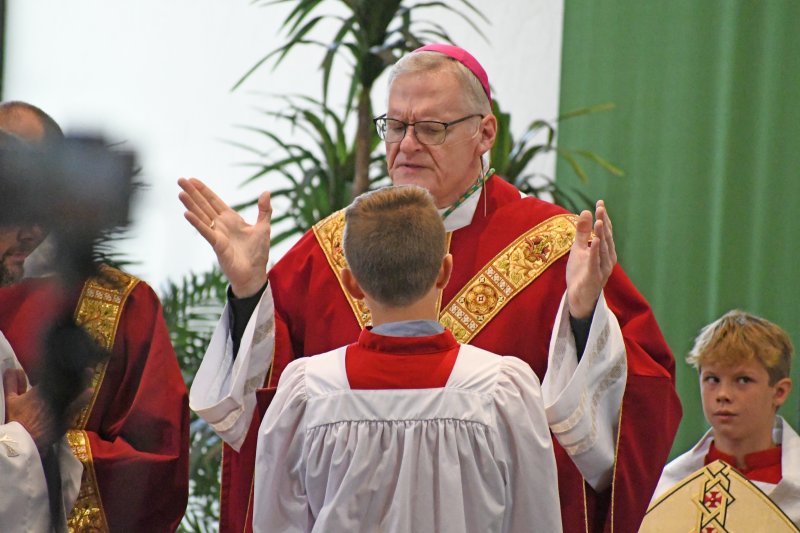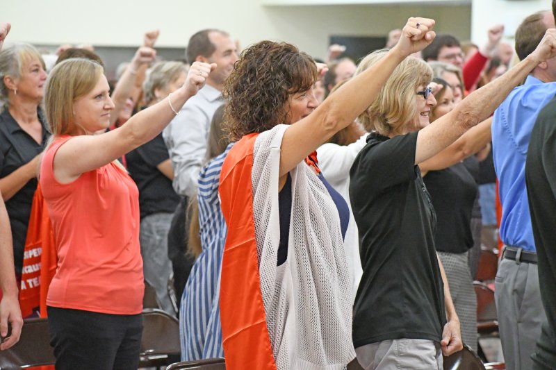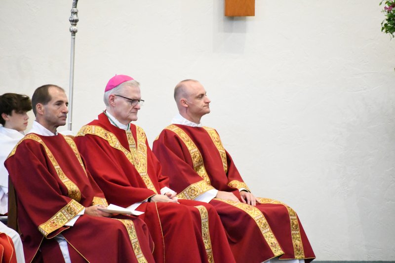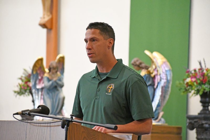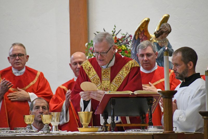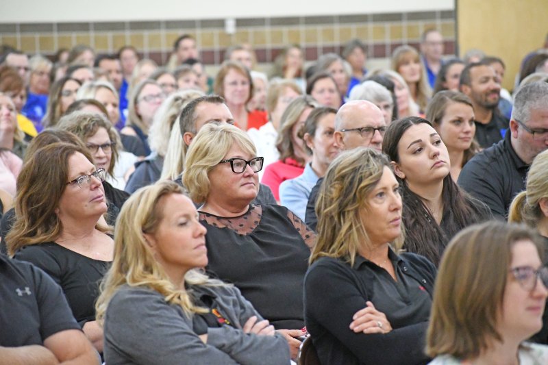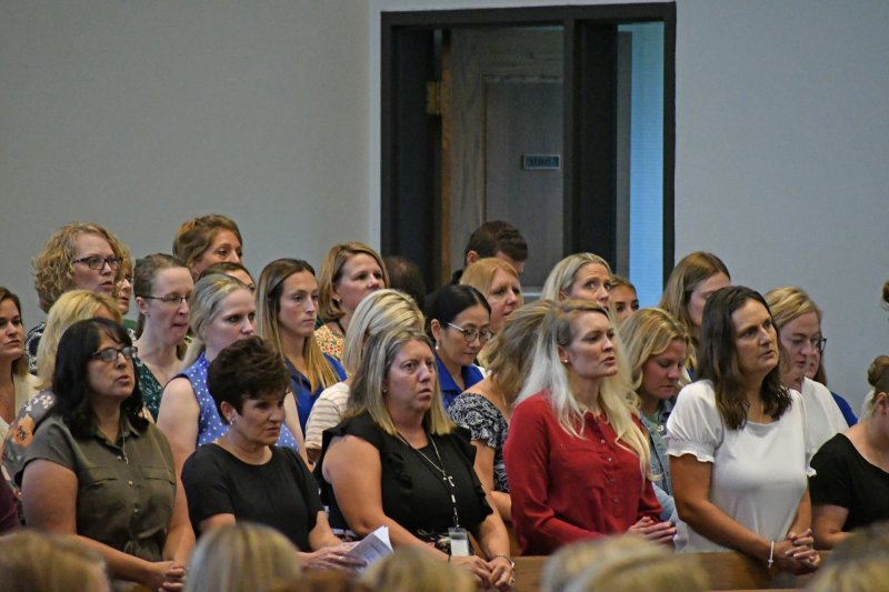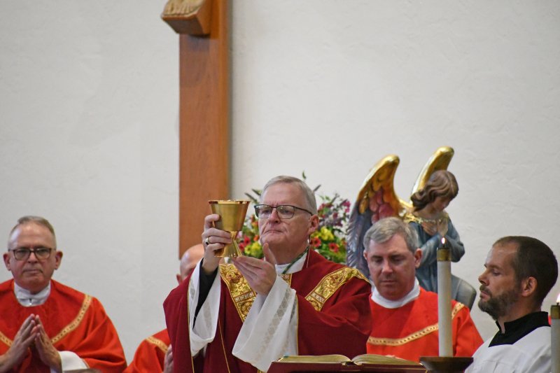 Over 500 Diocese of Evansville educators attended the Back to School Mass and speaker Aug. 1 at Good Shepherd in Evansville. Bishop Joseph M. Siegel celebrated Mass Aug. 1 at Good Shepherd Church for the Back to School Mass. Prior to Mass, Cathy Tooley, CEO of Tools for Success, spoke to educators from the 26 diocesan schools at Good Shepherd School. The first day of school for schools in the diocese ranges from Aug. 2 to Aug. 8.