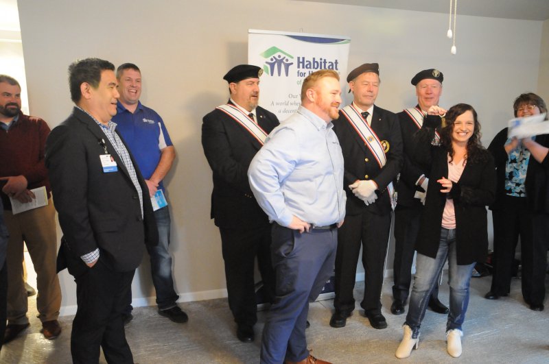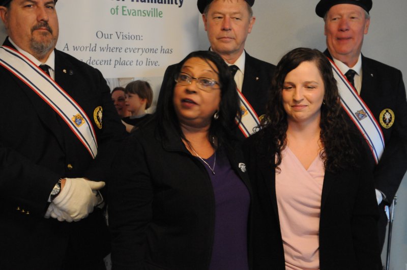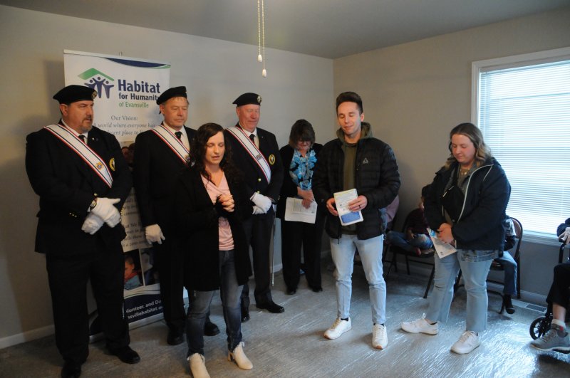 On April 4, Abigail Baker stood in the living room of her new Habitat home after being ecorted inside by the Fourth Degree Knights of Columbus Honor Guard Assembly 253. The home was the 598th home built by Habitat-Evansville in Vanderburgh and Posey counties, and the first house built in partnership with Catholics for Habitat and Ascension St. Vincent. The Message photos by Megan Erbacher.