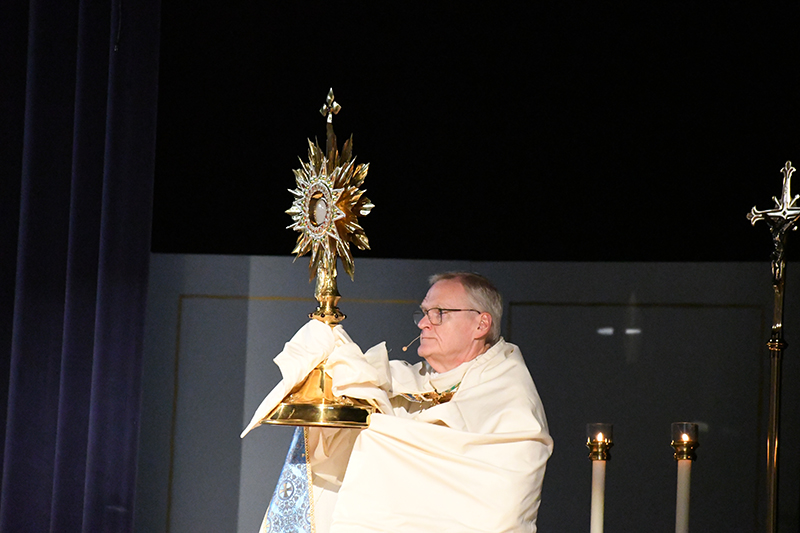 At the conclusion of Encounter Hope/Encuentro de Esperanza, both the English and Spanish conferences came together at Reitz Memorial High School for a Eucharistic Procession led by Bishop Siegel and a bilingual rosary.