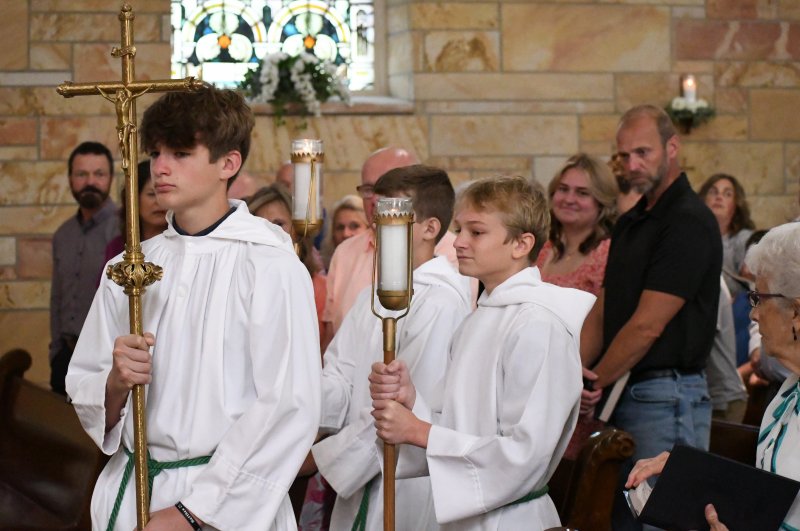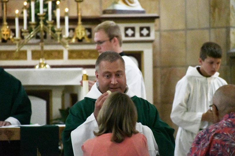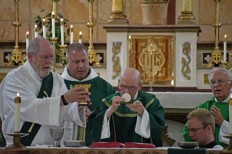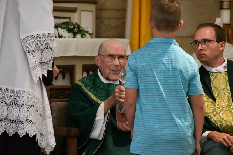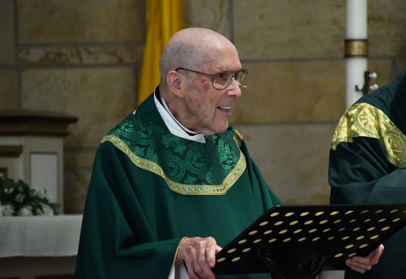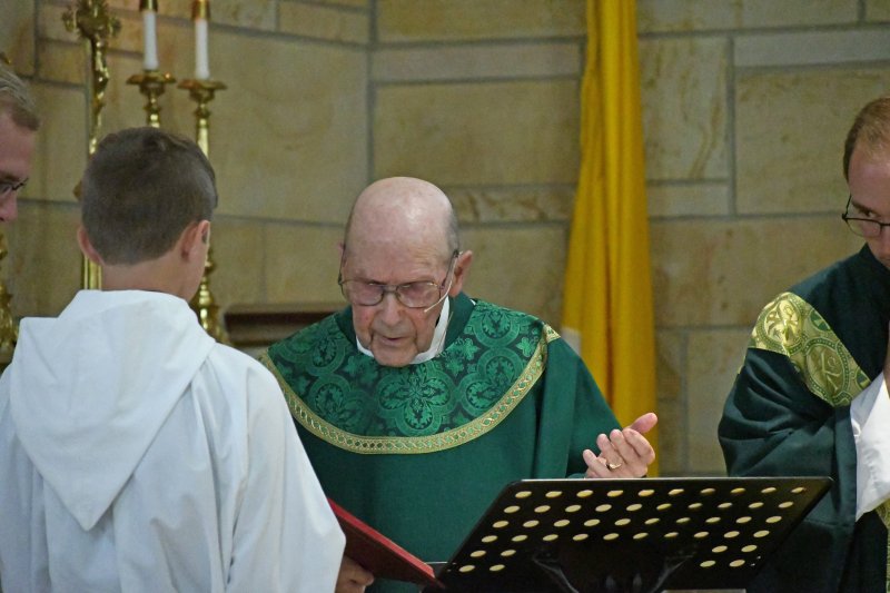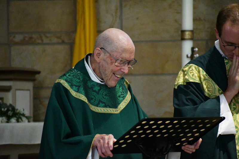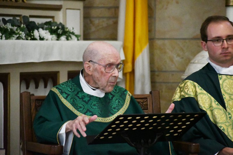 Diocese of Evansville Senior Priest Donald Dilger celebrated Mass Aug. 4 at Mary, Help of Christians Church in Mariah Hill. Father Dilger was ordained as a priest in March of 1959. The Message photos by John Rohlf