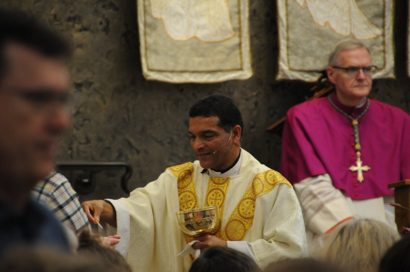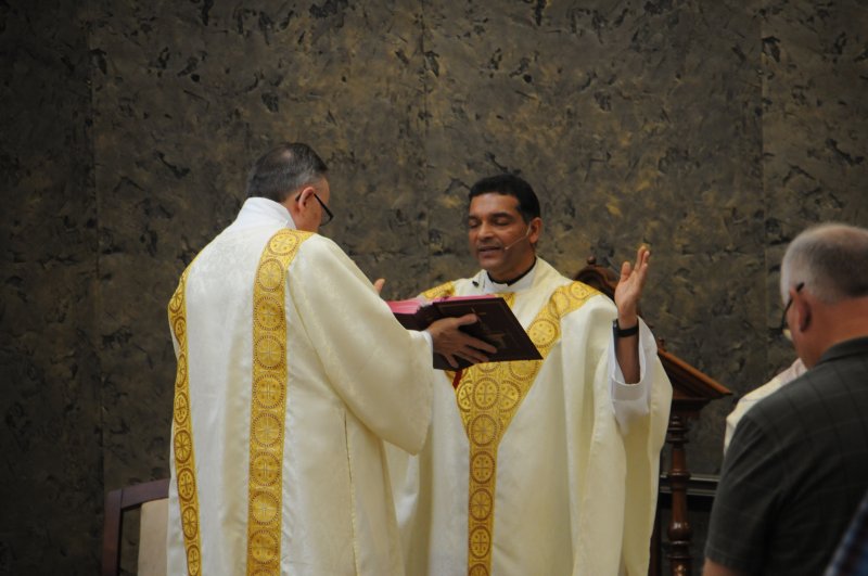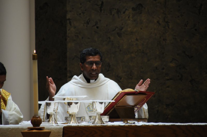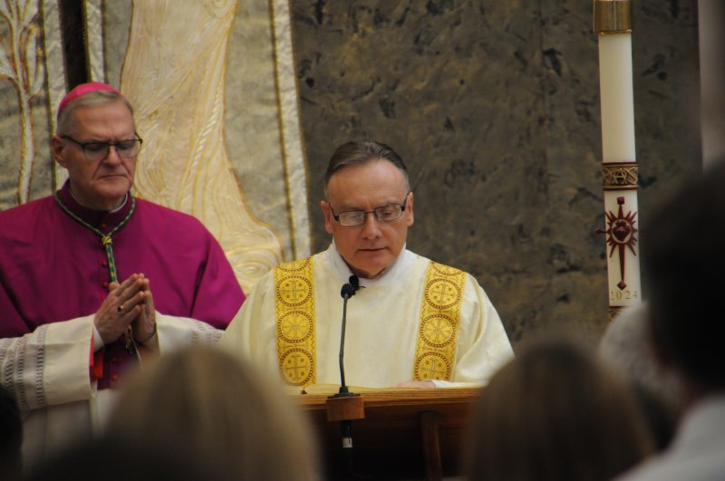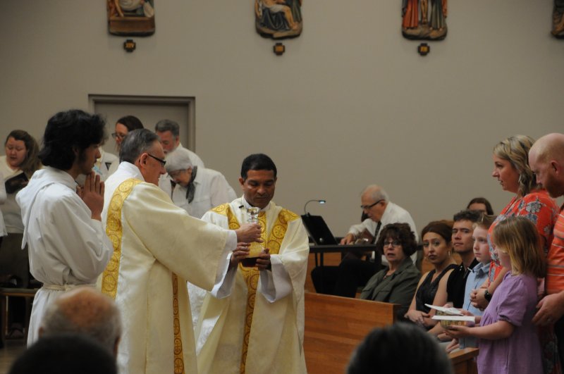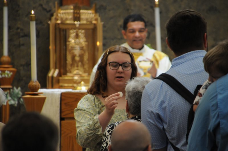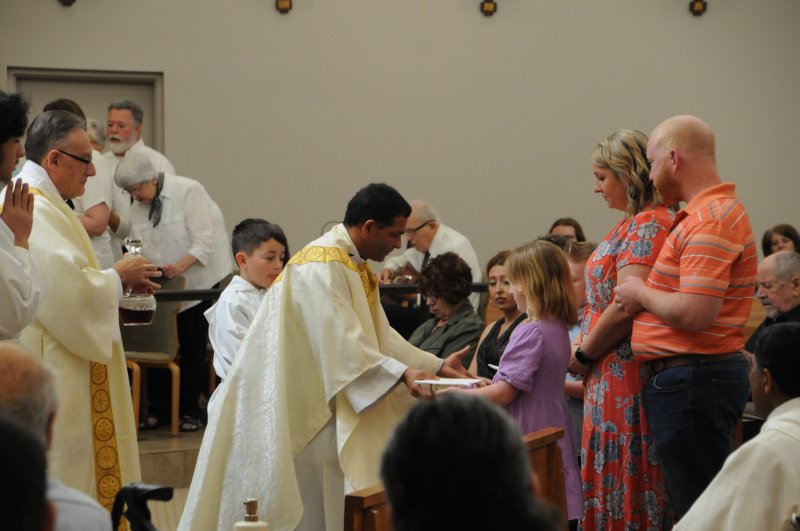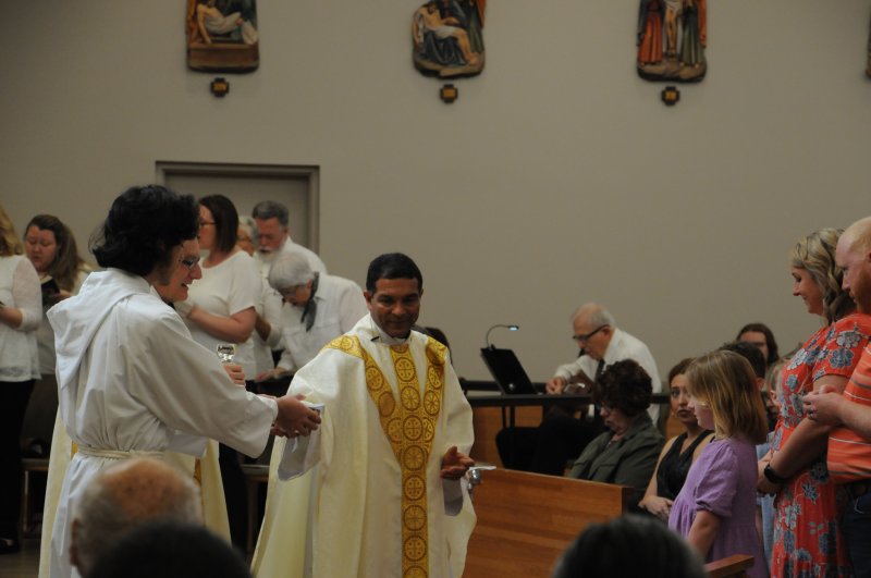 Msgr. Kenneth Knapp concelebrated Mass April 28 at Christ the King Church, which is part of Annunciation Parish. A retired priest in the Diocese of Evansville, Msgr. Knapp celebrated 61 years as a priest. He was ordained in March 1963. He held many positions in the diocese, including diocesan Vicar General and director of Catholic Charities. He was assigned to Christ the King Parish in 1995. He served the parish until his retirement in 2012. The Message photos by John Rohlf