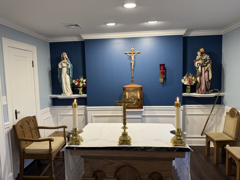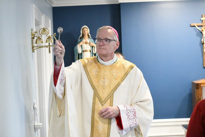 Bishop Joseph M. Siegel celebrated Mass March 16 at the new Oratory of St. Pier Giorgio Frassati. He dedicated the altar and blessed the oratory during the Mass. During the prayer of dedication and anointings, he placed a relic of St. Maria Goretti into the base of the altar, anointed the altar and incensed the altar. Ministers covered and lighted the altar.