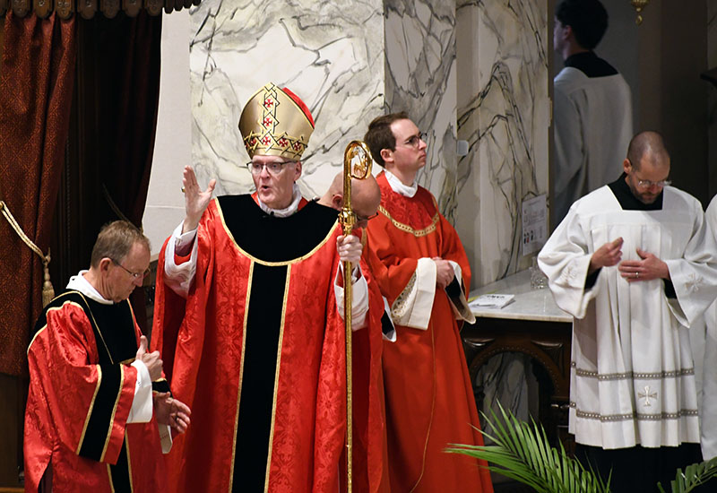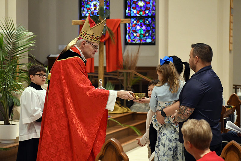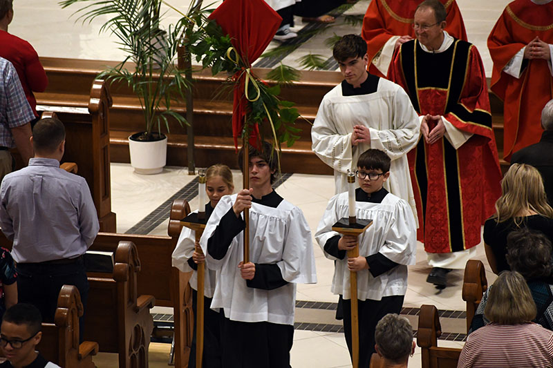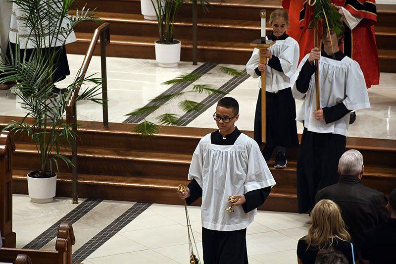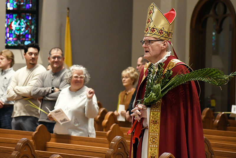 Bishop Joseph M. Siegel celebrated Palm Sunday Mass March 29 at St. Benedict Cathedral in Evansville. Coverage of the 2026 Diocese of Evansville Chrism Mass, the Sacred Triduum and the Easter Vigil in the Holy Night of Easter will be provided online and in the April 10 issue of The Message. The Message photos by John Rohlf