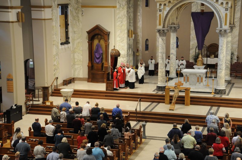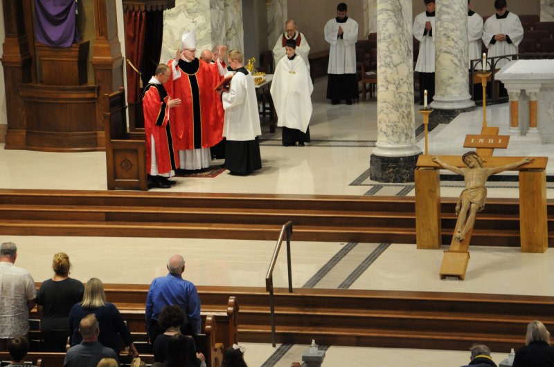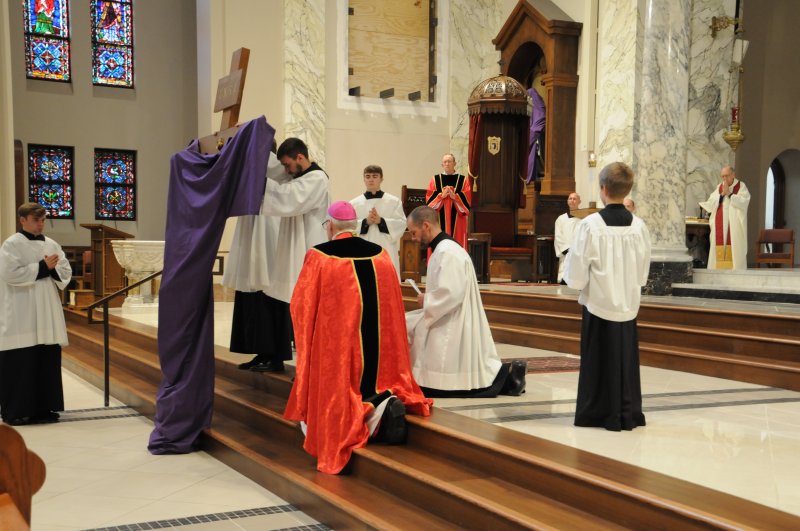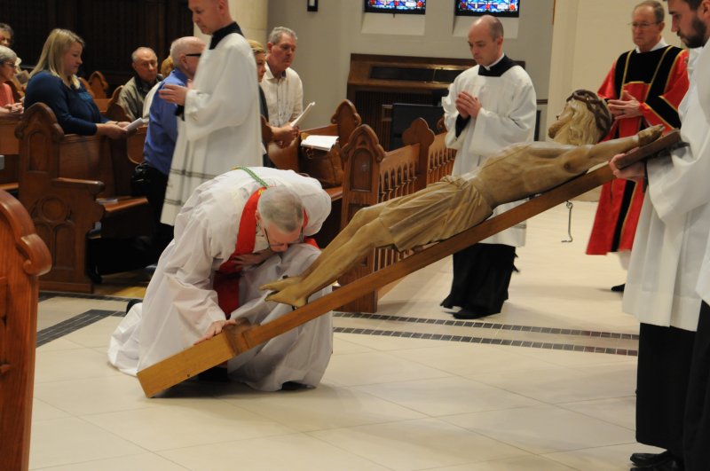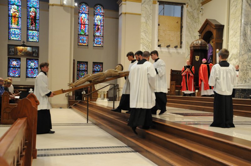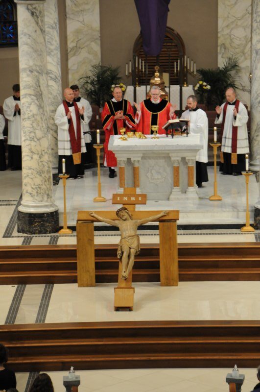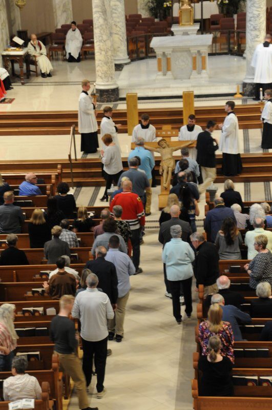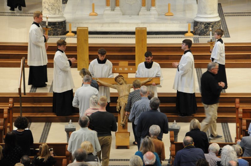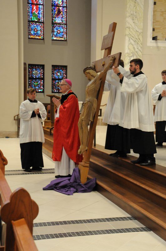 On March 29, Bishop Joseph M. Siegel celebrated the Good Friday Celebration of the Passion of the Lord at St. Benedict Cathedral in Evansville. Father Alex Zenthoefer, Father Tyler Tenbarge and Father Joseph “Effie” Erbacher concelebrated the Mass.