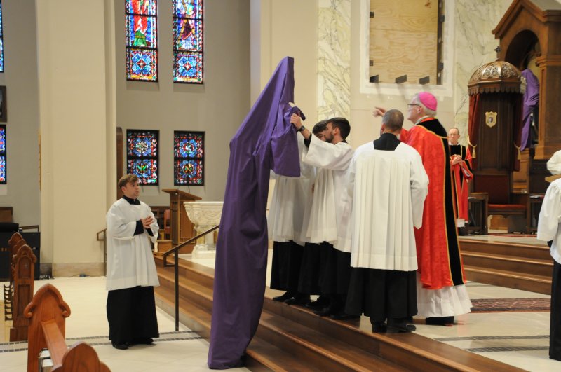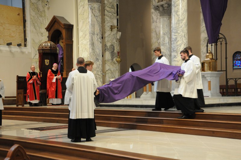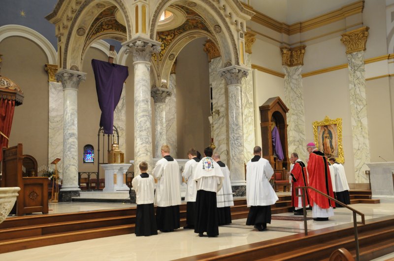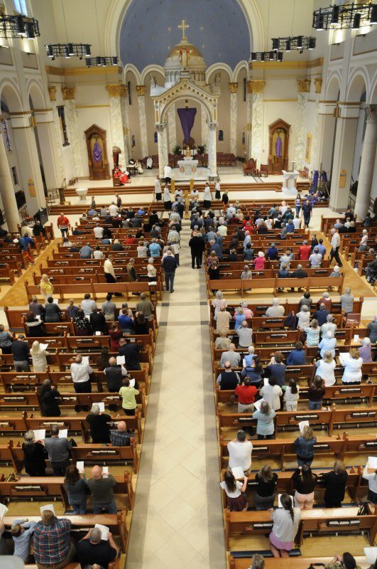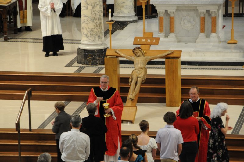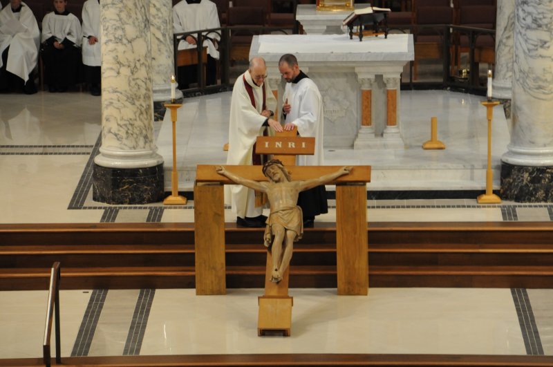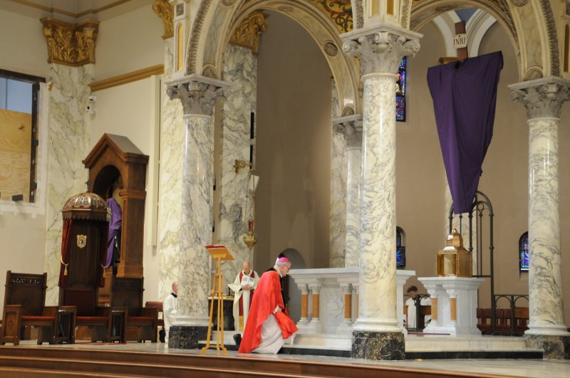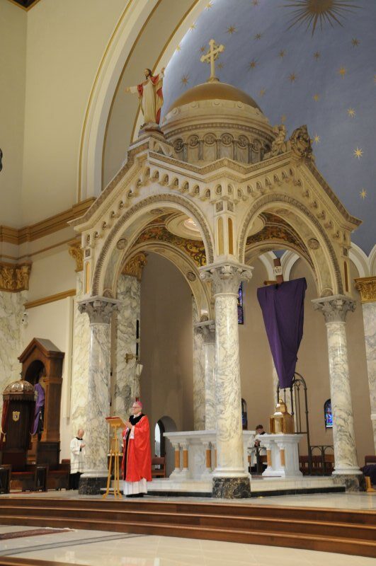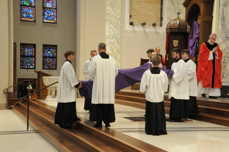 On March 29, Bishop Joseph M. Siegel celebrated the Good Friday Celebration of the Passion of the Lord at St. Benedict Cathedral in Evansville. Father Alex Zenthoefer, Father Tyler Tenbarge and Father Joseph “Effie” Erbacher concelebrated the Mass.