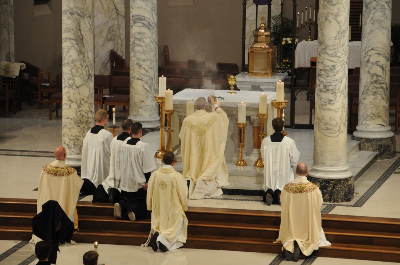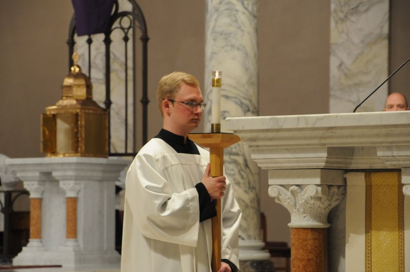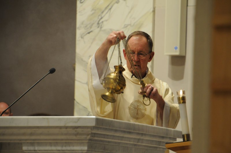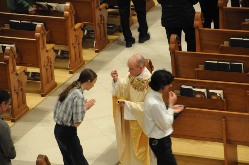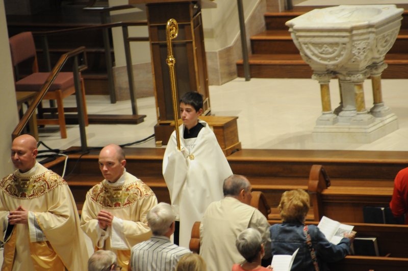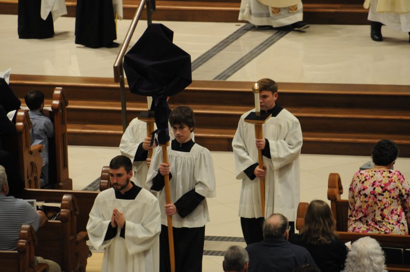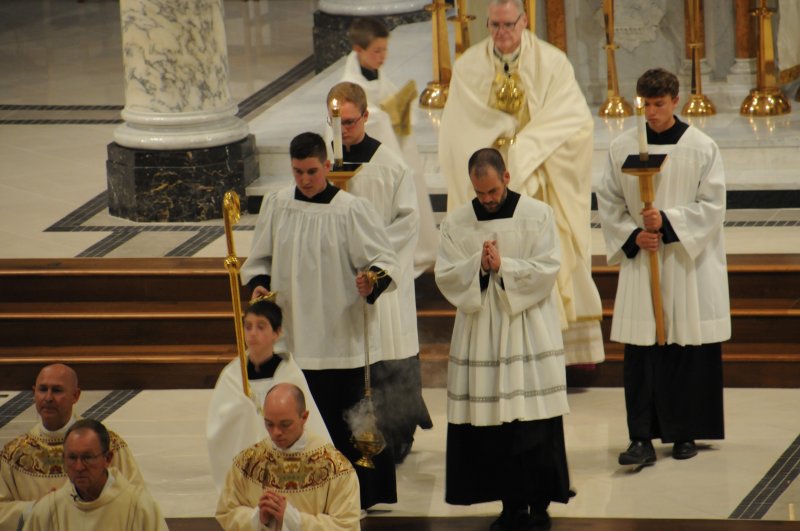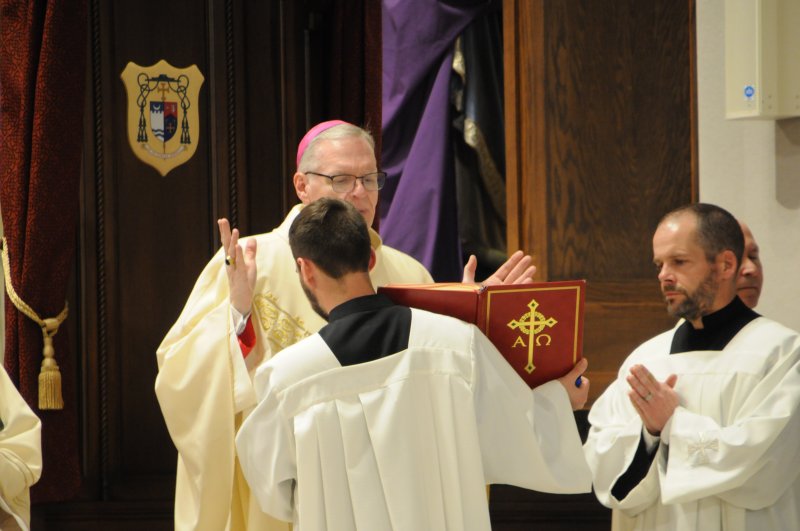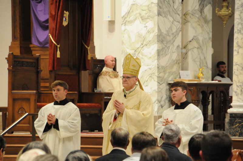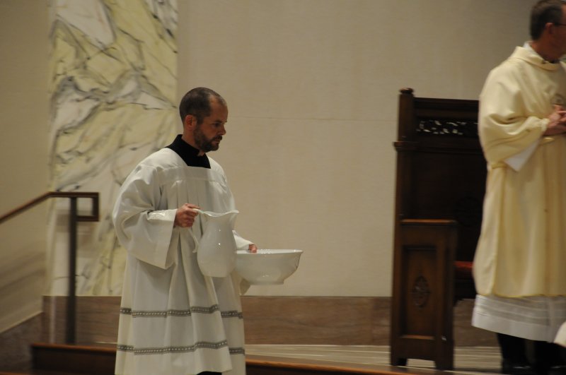Bishop Joseph M. Siegel celebrated the Holy Thursday Mass of the Lord's Supper March 28 at St. Benedict Cathedral in Evansville. Father Alex Zenthoefer and Father Tyler Tenbarge concelebrated the Mass. The Message photos by John Rohlf